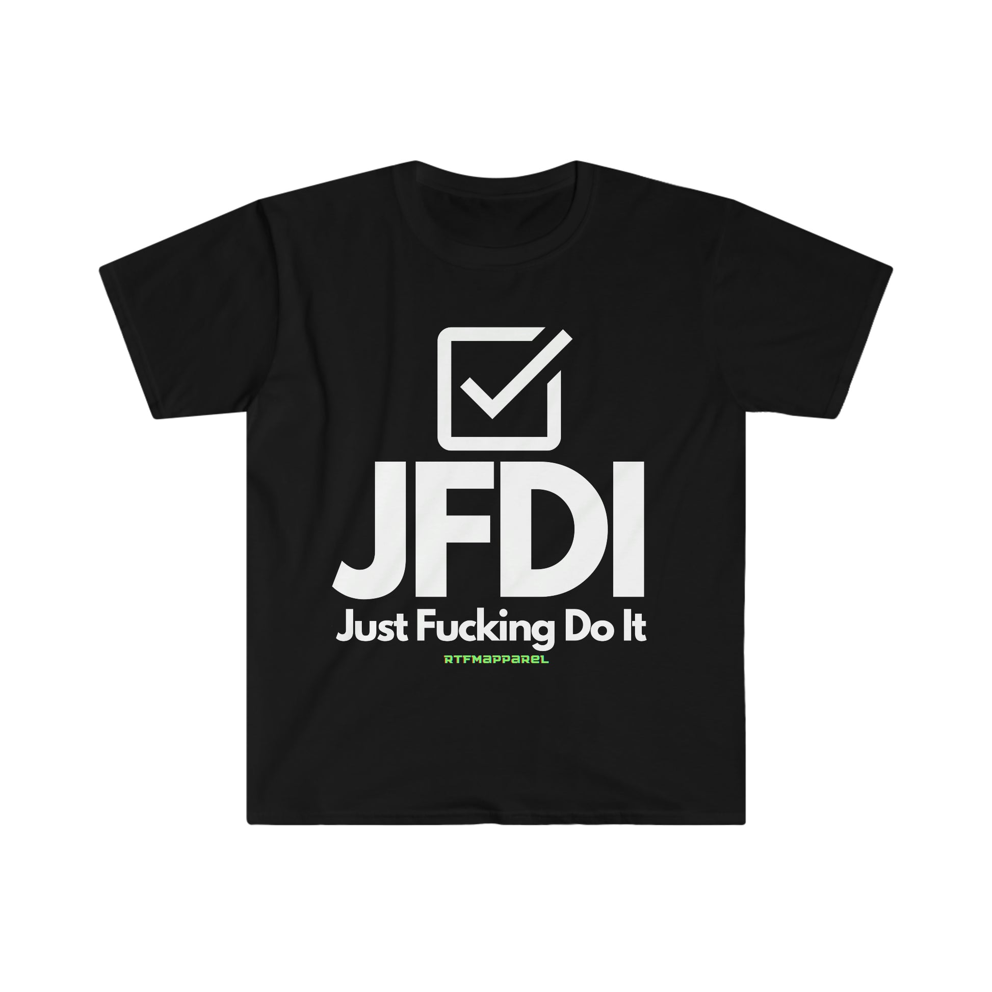JFDI, Just do it, Funny, Sysadmin, Geek, Project Manager, Explicit, Developer, Gift Unisex Softstyle T-Shirt