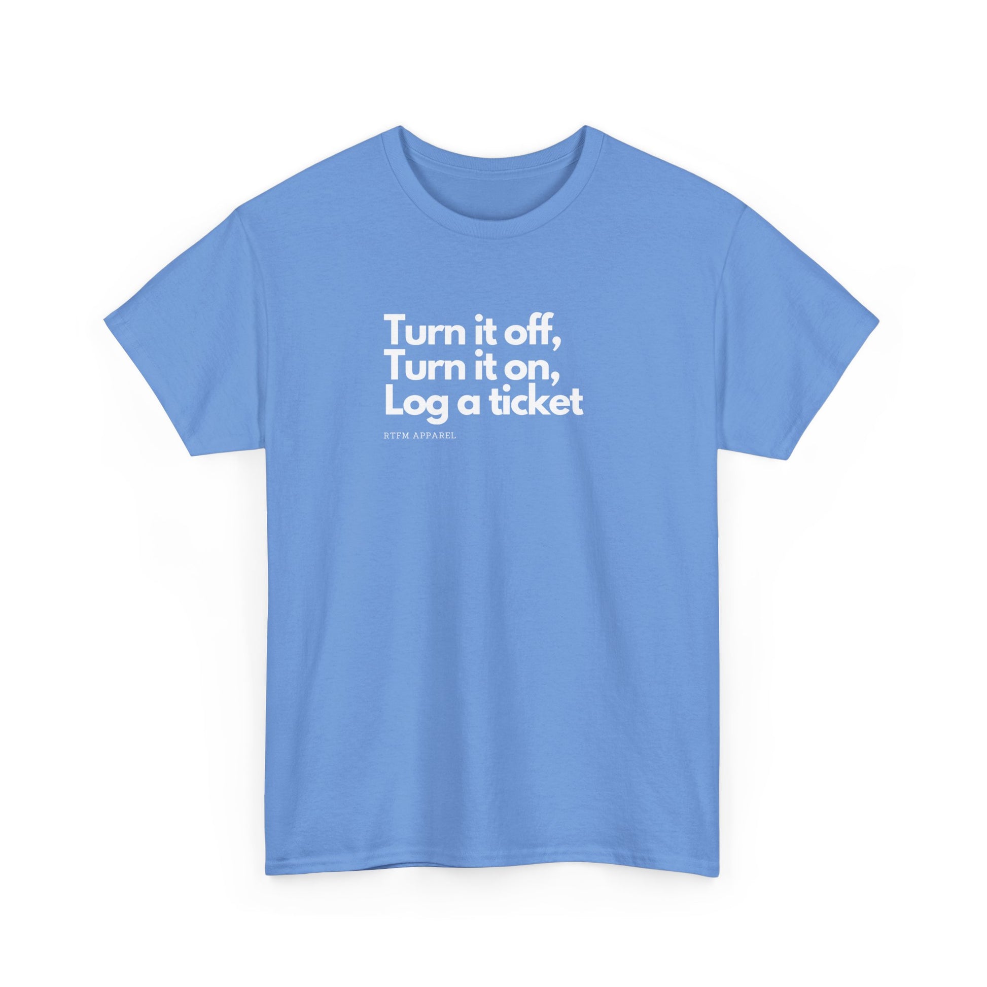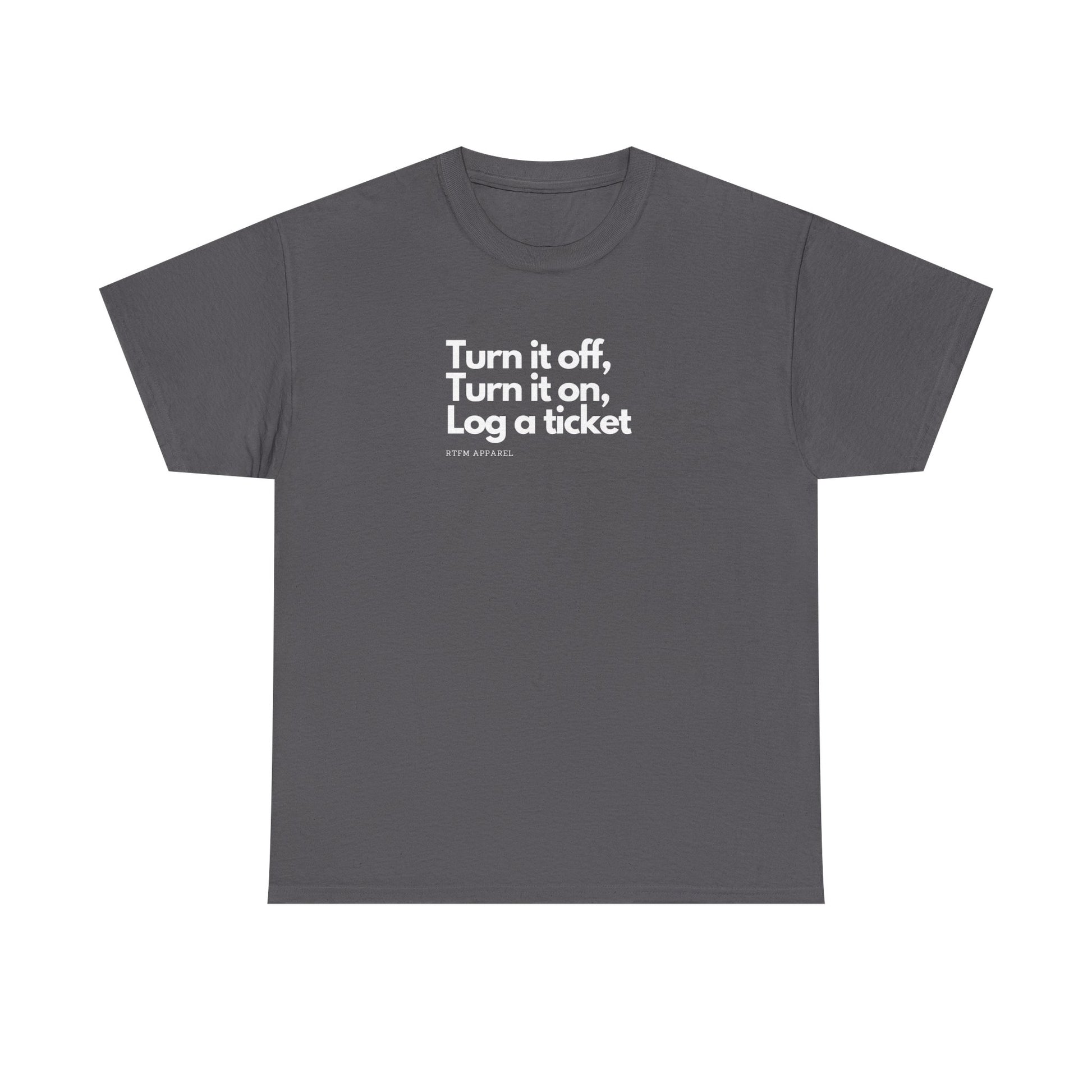 Turn It Off, Turn It On, Log A Ticket - IT Humor Tee For Geeks, Sysadmins, Engineers